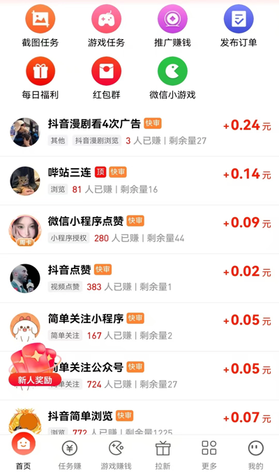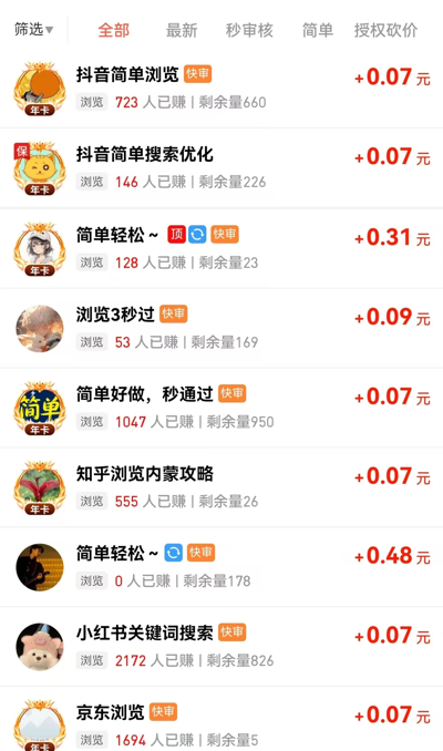 海量悬赏任务及试玩等你来完成,轻松赚钱,提现快速到账